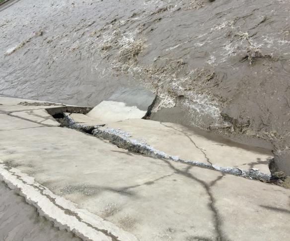 8月初,平武縣境內普降暴雨,涪江河水位猛漲,川能水電集團平武公司南壩水電站進行應急泄洪。8月6日,電站值班人員在進行庫區安全檢查時發現左岸左撲鴿溝上段約20米長的防洪堤基礎損壞,砼面板坍塌。災情緊迫,為避免險情擴大,平武公司立即組織搶險人員第一時間趕赴現場進行勘探,迅速制定了應急搶險方案。