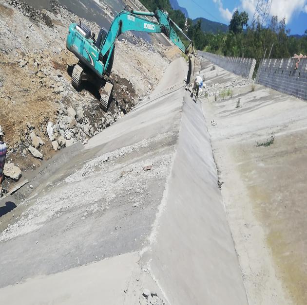 公司組織挖掘機、裝載機各1臺,從何家壩社下游防洪堤進入搶修現場,搶修臨時便道路,填筑攔水圍堰,拆除坍塌砼面板,重新澆筑面板。