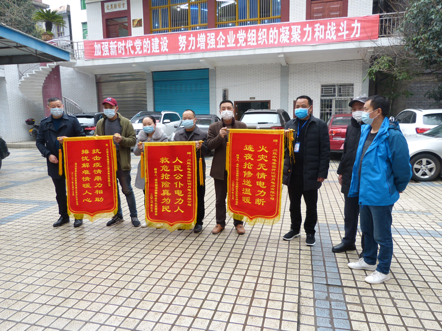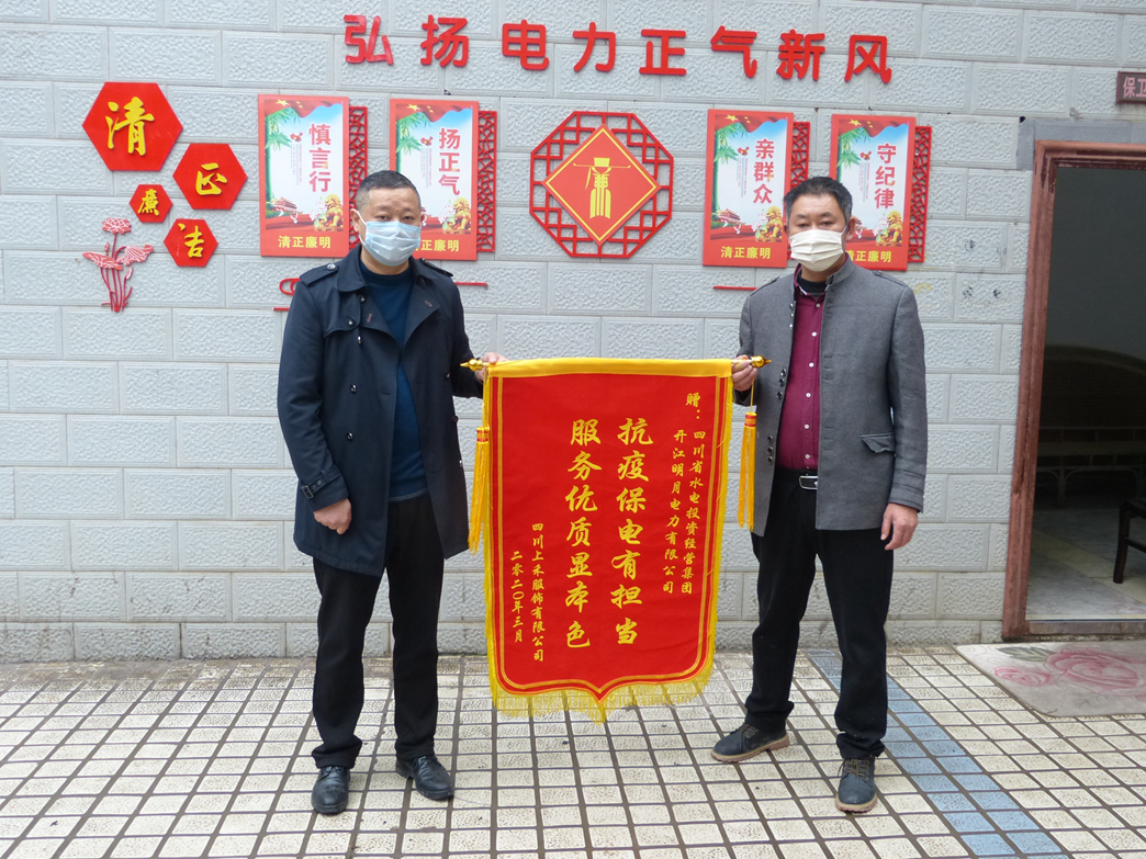 3月13日上午10點,四川上禾服飾有限公司、開江淙城街道辦事處金牛社區(qū)、開江宏昌達物業(yè)管理公司、開江金龍大廈部分業(yè)主代表分別向四川能投水電集團開江公司贈送寫著“抗疫保電有擔當,服務(wù)優(yōu)質(zhì)顯本色”、“抗擊疫情鼎力相助,排憂解難情暖人心”、“人民公仆電力人,救危搶險真為民”、“火災(zāi)無情電力斷,連夜搶修送溫暖”的四面錦旗,對開江公司優(yōu)質(zhì)、用心的服務(wù)表示感謝。
