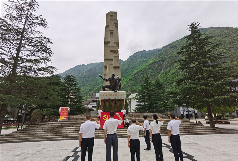 “群山巍峨,橫空鐵索,二郎山萬丈,大渡河奔波…”振奮人心的紅歌之下,波濤洶涌的大渡河之上,全體黨員參觀了紅軍飛奪瀘定橋紀念館,感受紅軍浴血奮戰時的艱險和壯烈,追憶先烈們堅定不移的革命信念和英勇無畏的革命氣概。在瀘定橋紀念碑前,全體黨員向22位奪橋勇士鞠躬致意、深切緬懷,接著面向黨旗高舉右拳,重溫入黨誓詞,再一次鄭重對黨作出莊嚴承諾。