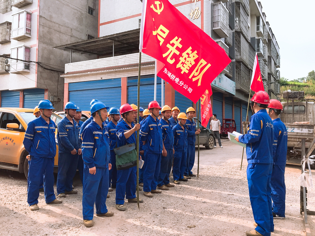 災情就是命令。搶險救災工作迫在眉睫。大竹公司黨委高度重視,本著集中力量辦大事的原則,及時召集黨員職工組成4支黨員先鋒隊,制定搶修方案,組織搶修車輛4臺,迅速開展災后電力搶險。