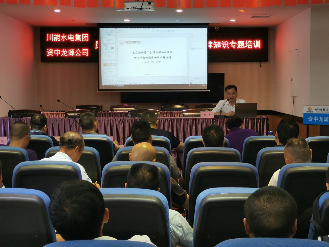 8月27日,川能水電集團資中公司邀請常年法律顧問、四川矩銘律師事務所主任聞科為公司進行法律知識培訓,公司領導班子成員及干部員工共90余人參加。