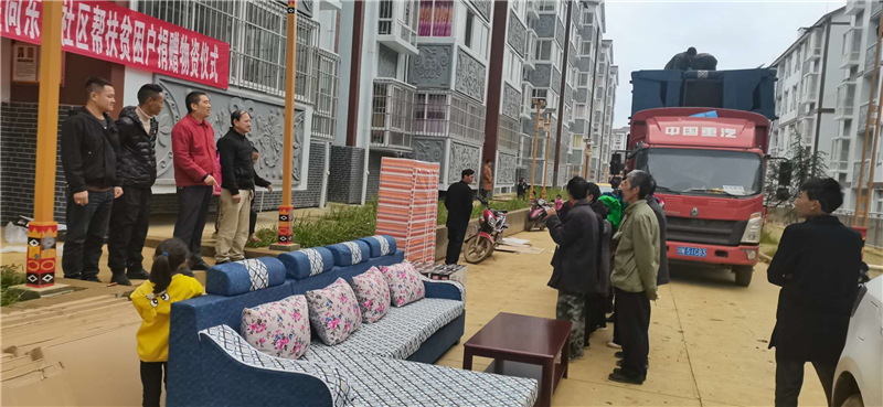 在我國第7個扶貧日到來之際,金陽公司急貧困群眾之所急,想貧困群眾之所想,向幫扶的礦山村搬遷到“東山社區”的19戶貧困戶每戶捐贈沙發一套、茶幾1個、簡易衣柜1個,總價值35530元,極大激發了貧困戶脫貧致富的內生動力,提升群眾的生活質量和滿意度,助推脫貧攻堅圓滿收官。