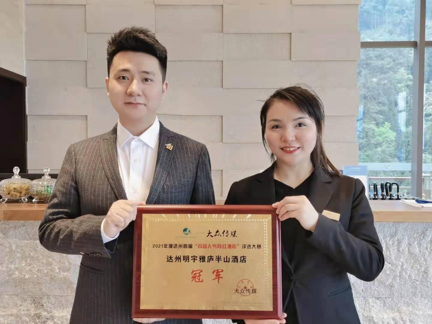 近日,明宇雅廬半山酒店參加了由大眾傳媒主辦的《2021年必住榜抖音人氣網紅酒店-達州站》評選活動,并從85家參選酒店中脫穎而出,榮獲 2021年度達州首屆“抖音人氣網紅酒店”評選大賽冠軍。