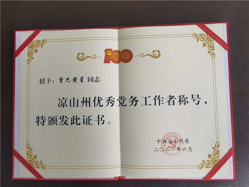 6月29日上午,涼山州優(yōu)秀共產(chǎn)黨員、優(yōu)秀黨務(wù)工作者、先進(jìn)基層黨組織表彰大會在西昌舉行,四川省水電集團(tuán)金陽公司后勤黨支部書記賈巴黃星同志被中共涼山州委授予“涼山州優(yōu)秀黨務(wù)工作者”稱號。