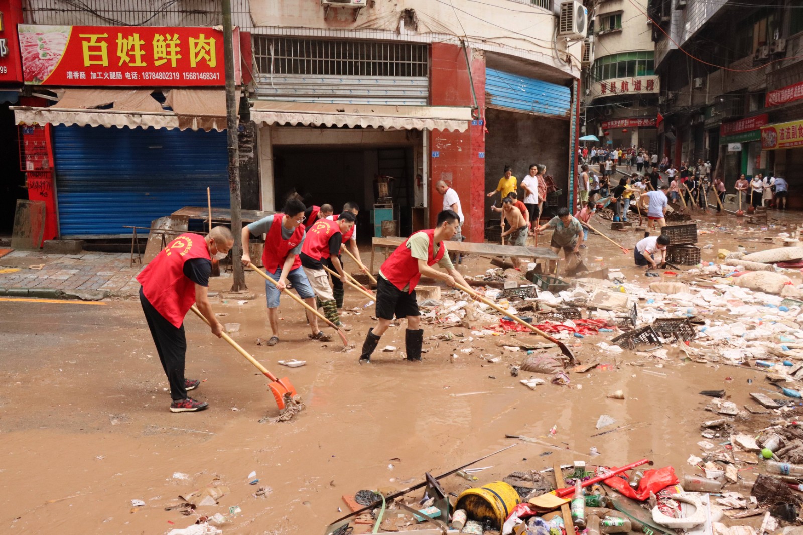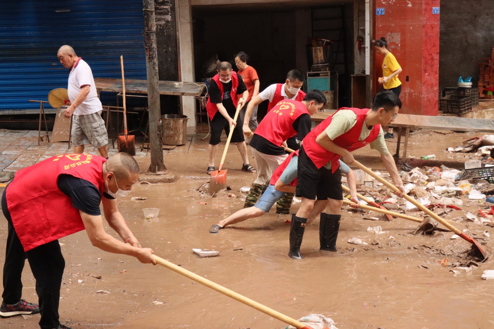 黨有號召,團有行動。7月12日上午8:00,渠縣公司8名青年員工組成志愿者隊伍,自發投身到災后清淤工作。