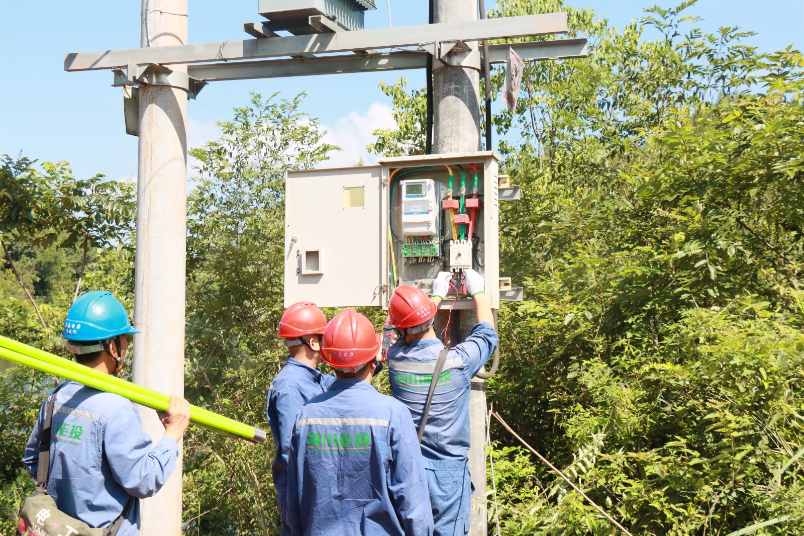 藍色長袖工裝、藍色安全帽,曾是渠縣電力公司職工出勤標準著裝,但自2020年起,口罩也成為電力職工工作時的必需品,“裝備”的升級讓在烈日高溫下的作業人員更加悶熱。但更高頻次的巡視、日常維護、用戶故障搶修工作,渠縣電力人一刻也沒有猶豫、一個也沒有落下。