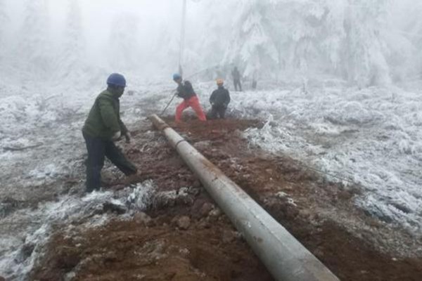 2021年初,一場(chǎng)罕見(jiàn)的低溫雨雪冰凍災(zāi)害襲來(lái),金陽(yáng)公司供區(qū)內(nèi)3條地處高海拔區(qū)域的10千伏線路多處發(fā)生倒桿斷線,致使兩個(gè)鄉(xiāng)鎮(zhèn)近千家用電群眾斷電。