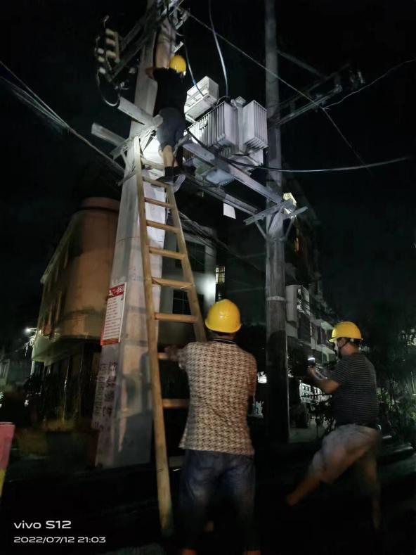 7月13日中午供區(qū)內(nèi)發(fā)生兩起故障,任市鎮(zhèn)任福街三叉路口變壓器出現(xiàn)故障及三里橋變臺(tái)出現(xiàn)過熱狀況,開江公司立馬安排人員進(jìn)行檢修,排除了設(shè)備故障。7月13日晚,普安供電所在夜巡時(shí)發(fā)現(xiàn)普安鎮(zhèn)紅綠燈變臺(tái)因超負(fù)荷運(yùn)行,隨時(shí)可能出現(xiàn)故障。為不影響居民正常的生產(chǎn)生活,公司組織精干力量于7月14日凌晨用電低峰時(shí)段,連夜對該臺(tái)區(qū)變壓器進(jìn)行了更換,確保了居民正常用電。