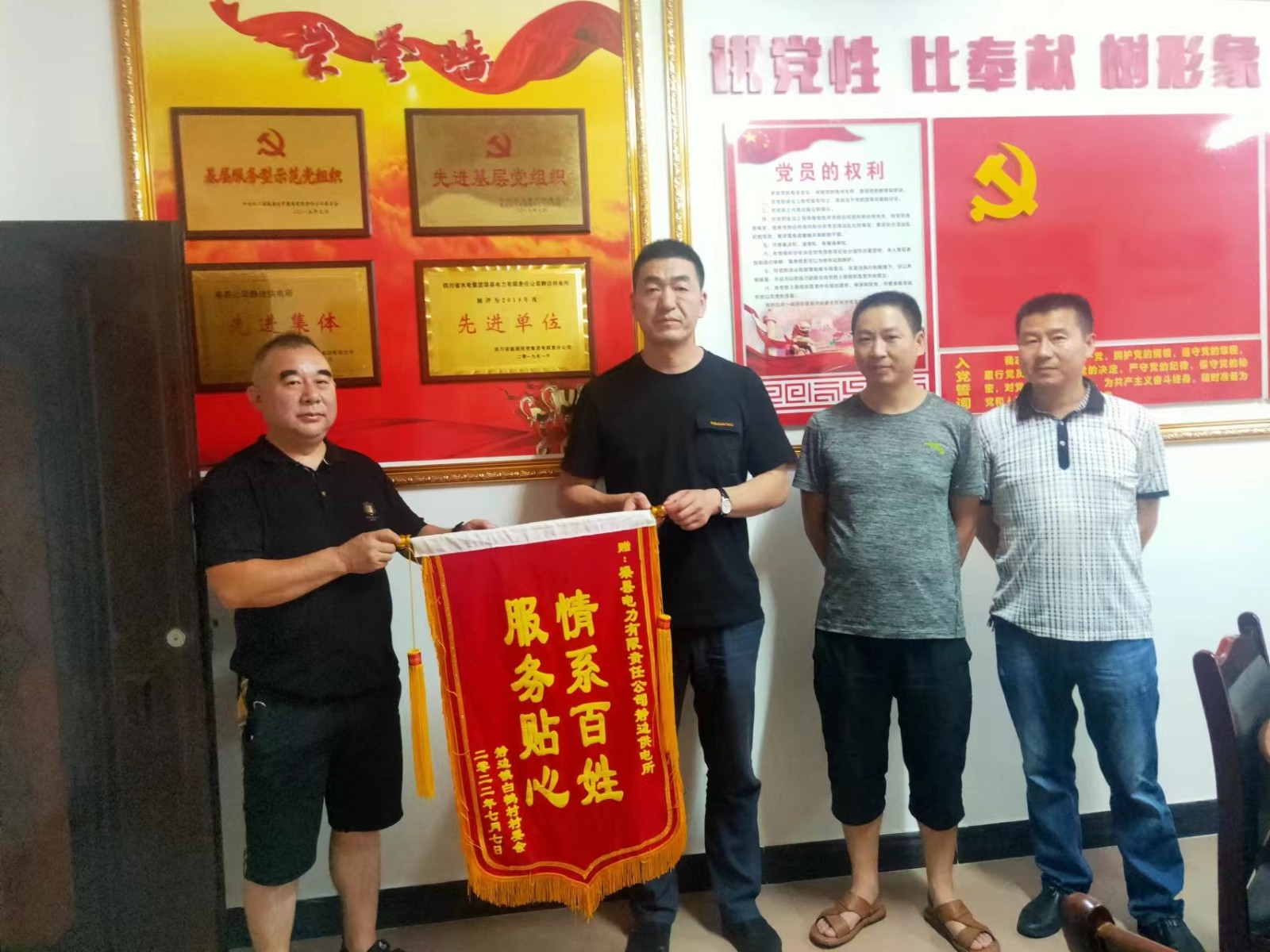 白鶴村村民對靜邊供電所電力工作人員不懼高溫酷暑,及時(shí)發(fā)現(xiàn)處置用電問題的迅速反應(yīng)紛紛點(diǎn)贊,村支部書記代表村民為供電所送來“服務(wù)貼心,情系百姓”的感謝錦旗。
