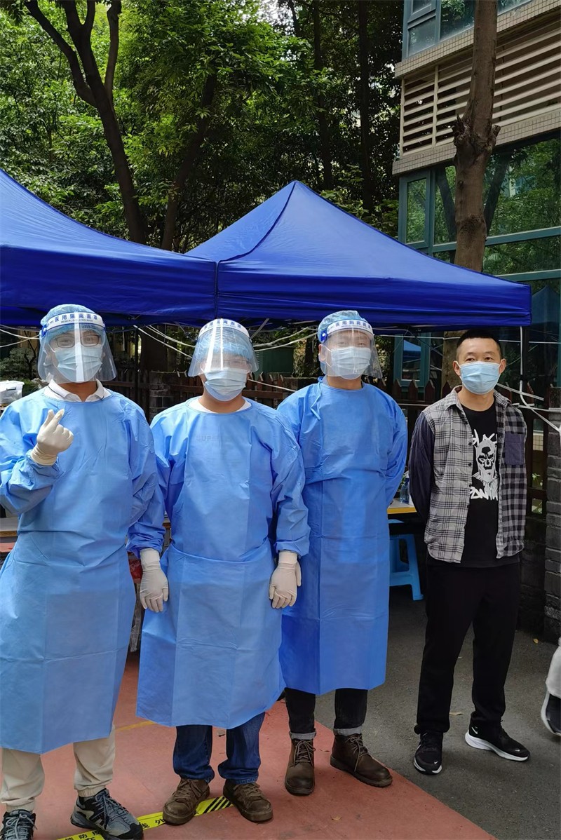 “報告,我就住在溫江,我申請報名。”家住溫江區的太陽高科公司青年職工匡思濤、關松濤、張勇和綜能公司青年職工楊彬琪積極響應。按照社區工作安排,分批分次投入到核酸檢測工作中。大家都是第一次穿上這種全副武裝的防護服,“我倒是不怕累,但穿上防護服確實很熱,今天工作結束后,我脫下防護服后里面全是水。”匡思濤談及第一次當“大白”的感受。目前,四人按照社區安排,輪流上崗,為疫情防控貢獻青春力量。