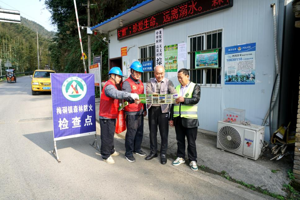 與此同時,服務隊人員還走村入戶,深入田間地頭,加強森林防火和電力設施保護宣傳,在臨近線路人員密集區域和主要進山路口張貼森林防火宣傳畫,向沿線群眾發放宣傳資料,增強群眾防火護線安全意識,營造群防群治的良好氛圍,筑牢黨群共建的森林防火“紅色屏障”。