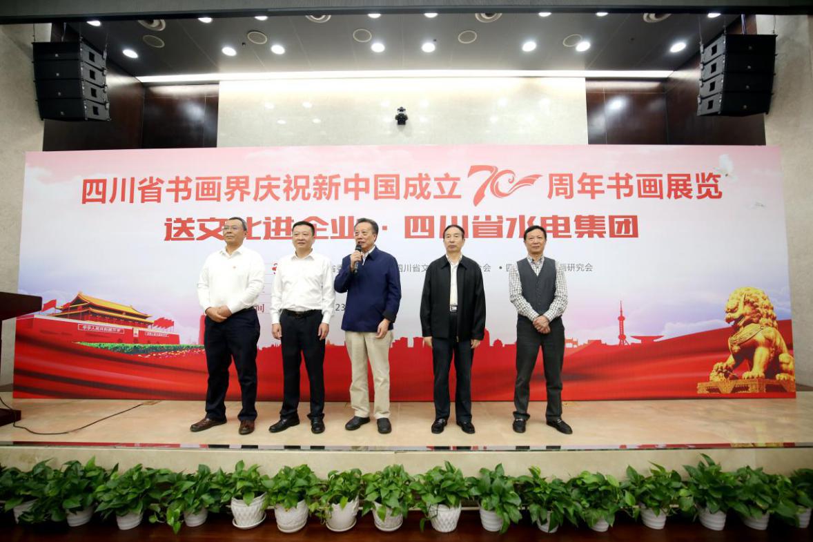 在偉大祖國70周年華誕之際,9月23日,四川省老年書畫研究會“送文化到企業(yè)”活動在川能水電集團拉開帷幕。四川省人大常委會原副主任李洪仁宣布開幕,省老年書畫研究會會長陳榮仲出席開幕式并講話,川能水電集團黨委書記、董事長曾勇致歡迎詞,開幕式由川能水電集團黨委副書記、總經(jīng)理熊林主持。