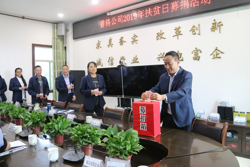 集團本部、美姑公司、金陽公司、普格公司、百事吉公司、永安公司、金禾盛公司、開江公司、平武公司、青川公司、萬源公司、資中公司、德格公司等紛紛開展“扶貧日”募捐活動,籌集善款近37萬元。其中美姑公司為牛牛壩鄉卡俄村、爾庫村、爾曲村共計215戶建檔立卡貧困戶購買生產生活及越冬物資;金陽、普格等公司除了對貧困戶進行資金、物資支持外,還積極安排人員走村入戶,進一步了解貧困戶生產生活情況、宣講政策和文化知識,鼓勵貧困戶牢固樹立脫貧信心,摒棄“等靠要”思想,確保物質脫貧的同時實現精神脫貧;資中公司前往順河場鎮開展“扶貧濟困、你我同行”扶貧日志愿服務活動,和當地政府就今年扶貧攻堅工作進展情況進行交流座談,看望走訪貧困戶,為他們送去慰問金和志愿服務。
