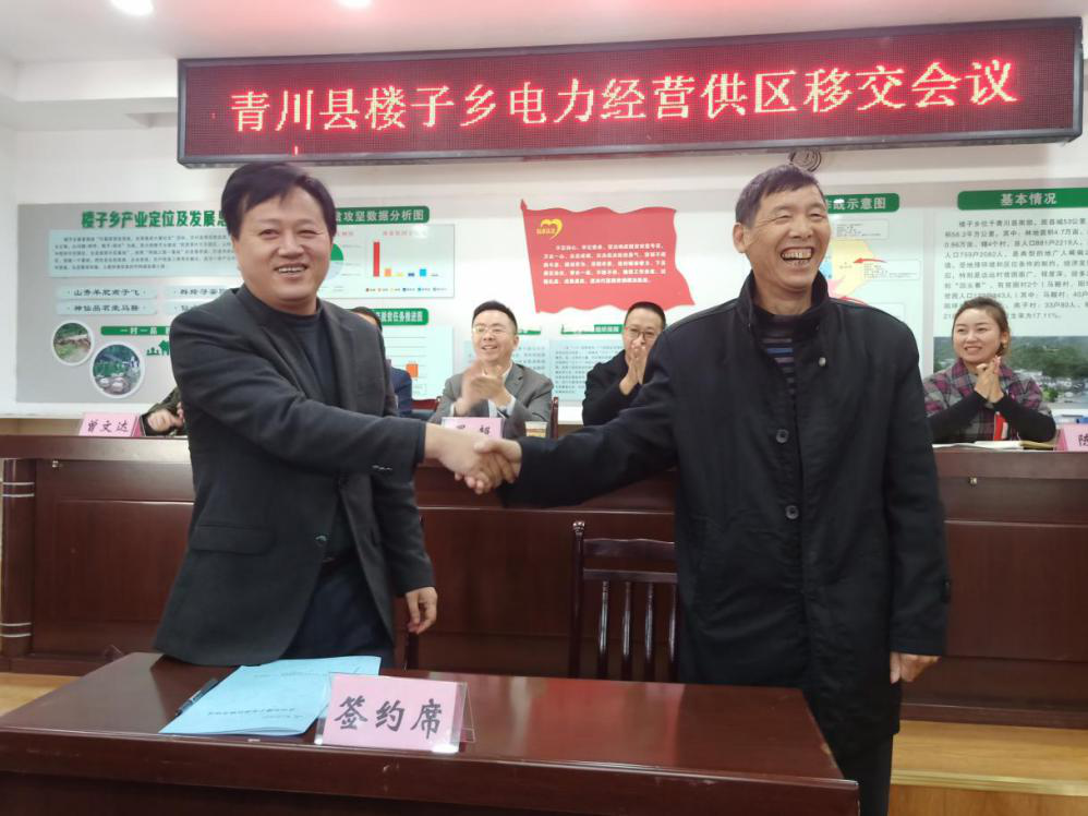 樓子鄉供電區域因歷史原因由樓子鄉水磨河電站(私人所有)供電,1996年經四川省經信委核準同意,樓子鄉被明確為青川電力有限公司供電區域,然而,供區接收工作的開展并不順利。近年來,經多方協調、艱難談判,10月28日,川能水電集團青川公司與樓子鄉水磨河電站正式簽訂《青川縣樓子鄉供區移交協議》,確保在今年年底前全面完成供區經營權屬交割、實物資產清理移交等工作,成功邁出正式收回所屬供區的第一步。