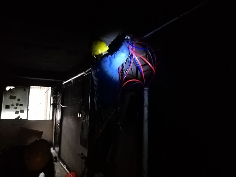 開江縣金龍大廈屬于老舊小區(qū),配電設(shè)施未移交開江公司管理。火災(zāi)發(fā)生后,電器設(shè)備燒毀嚴(yán)重,住戶及物業(yè)萬(wàn)分焦急、束手無(wú)策。災(zāi)情就是命令,恢復(fù)供電就是責(zé)任。火情消除后,開江公司緊急抽調(diào)3個(gè)供電所和安裝調(diào)試中心的精干力量組成臨時(shí)搶修隊(duì),分四個(gè)小組同時(shí)開展作業(yè)。