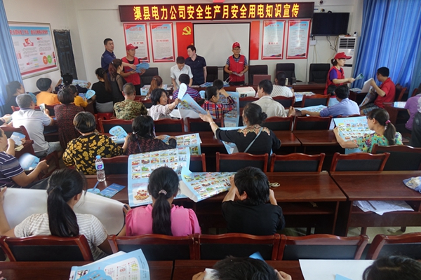 渠縣公司志愿服務(wù)隊(duì)走進(jìn)對(duì)口幫扶的三板鎮(zhèn)三板村,利用農(nóng)民夜校,把安全用電宣傳掛歷、手冊(cè)、小扇子發(fā)放到參會(huì)者手中,并結(jié)合農(nóng)民生活實(shí)際,對(duì)照安全用電宣傳畫(huà)講解安全用電知識(shí)。