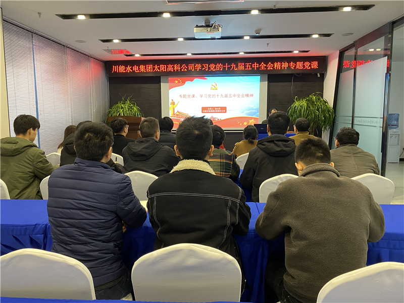 太陽高科公司召開專題黨課,從“十三五”以來取得的成就、“十四五”時期經濟社會發展指導思想和必須遵循的原則、“十四五”時期經濟社會發展的主要目標、重點任務等方面,對黨的十九屆五中全會精神進行了全面系統深入的講解。