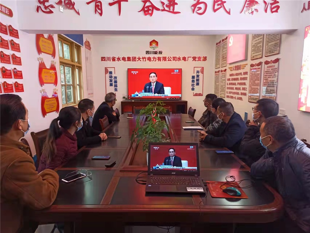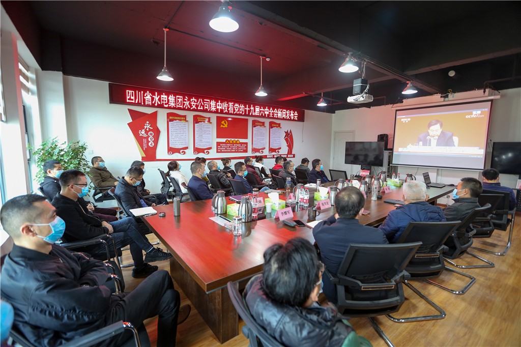 11月12日上午10時,中共中央舉行新聞發布會,介紹黨的十九屆六中全會精神。四川省水電集團黨委把收聽收看黨的十九屆六中全會新聞發布會作為一項重要的政治任務,精心組織、周密部署、廣泛動員,在嚴格落實新冠肺炎疫情防控要求的基礎上,組織廣大干部職工采取線上、線下等多種形式收聽收看新聞發布會實況并開展學習討論,確保將黨的十九屆六中全會精神學習到位、領會到位、貫徹到位。