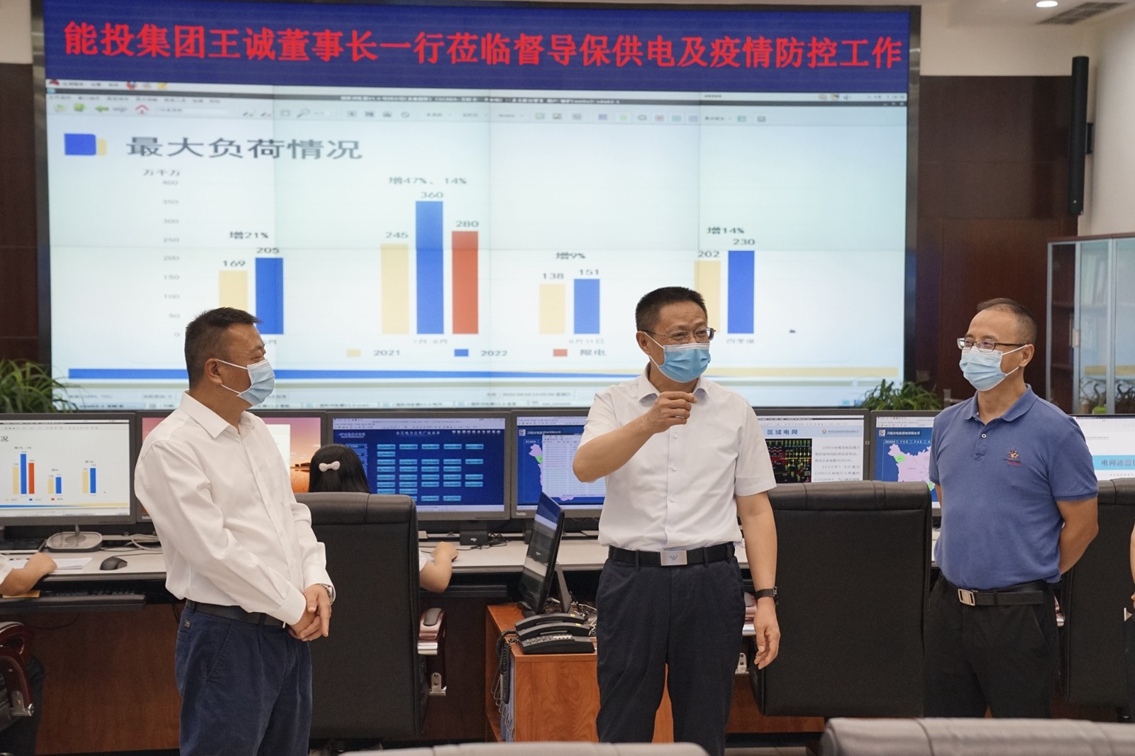 王誠先后察看了四川省水電集團電力調度中心、安全應急指揮中心以及“96598”客戶服務中心,看望慰問值班人員,詢問值班值守、后勤保障等情況,并聽取了曾勇關于經營管理、電力保供、疫情防控以及安全生產等工作情況。