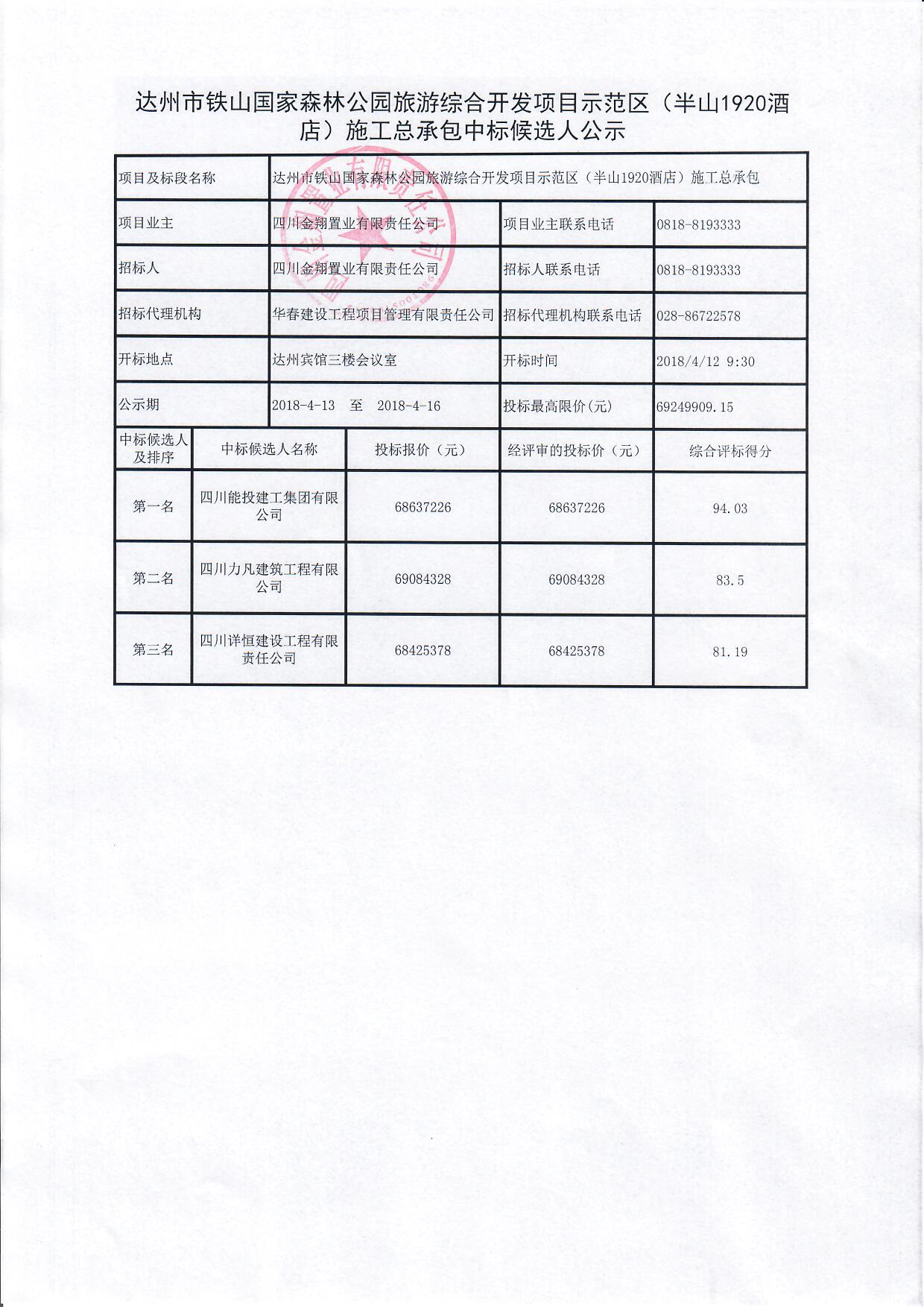 下一條:達州市鐵山國家森林公園旅游綜合開發(fā)項目示范區(qū)(半山1920酒店)施工監(jiān)理中標候選人公示