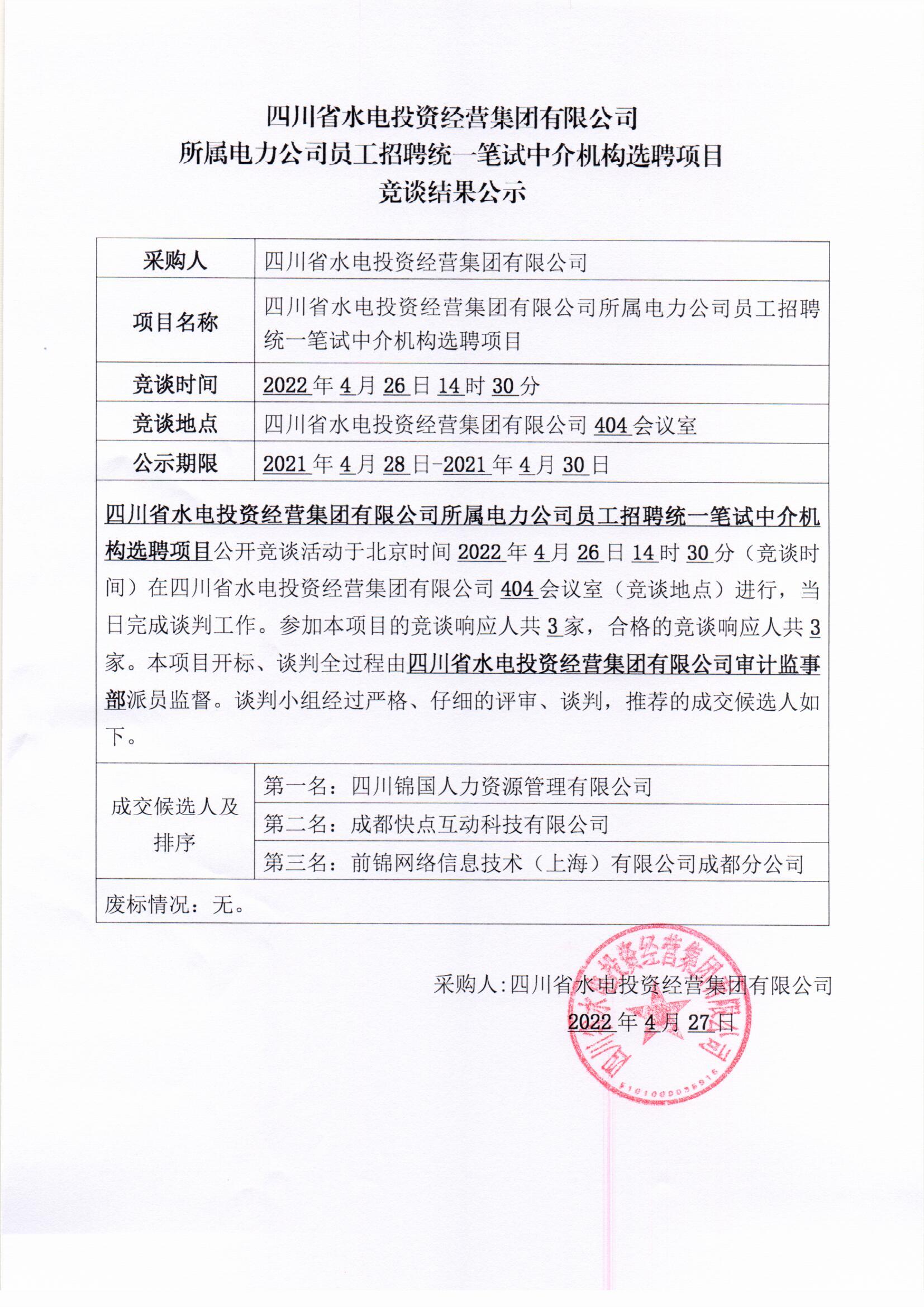 下一條:四川省水電投資經(jīng)營集團(tuán)有限公司所屬電力公司員工招聘統(tǒng)一筆試中介機(jī)構(gòu)選聘項(xiàng)目競爭性談判公告
